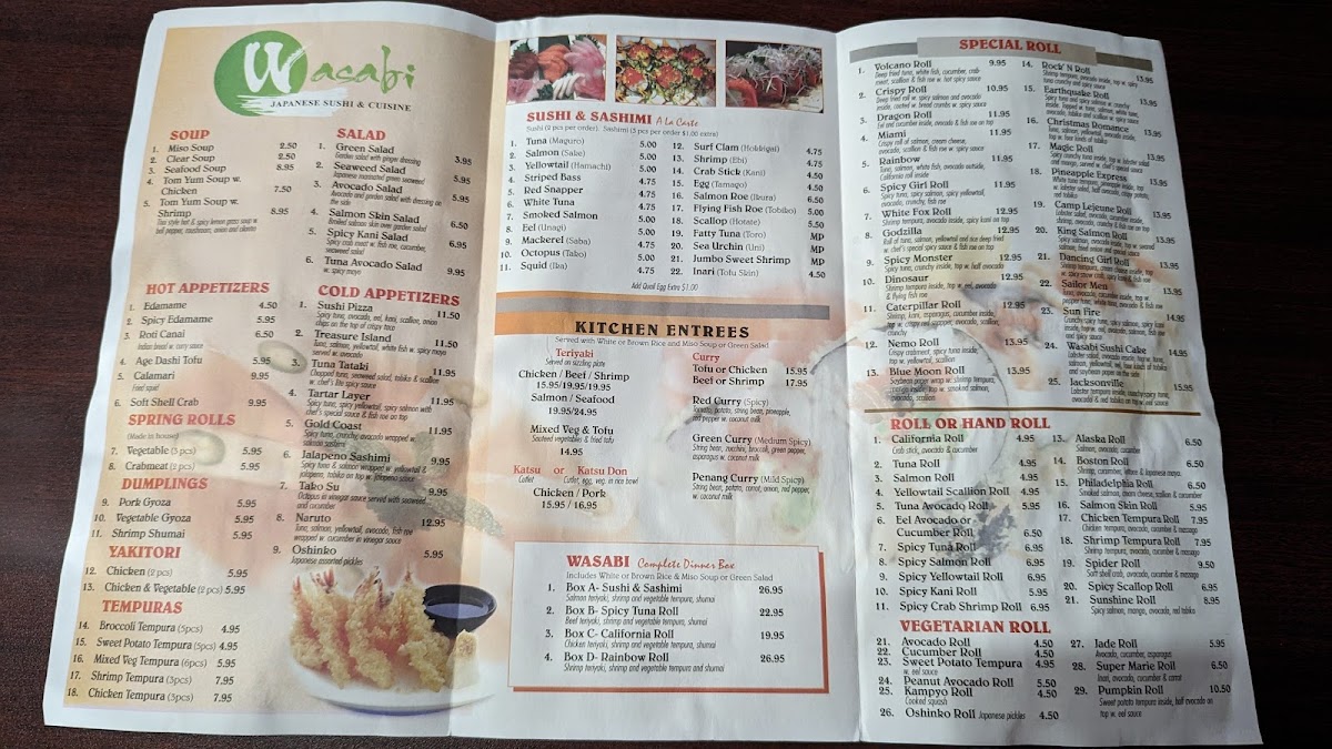 Introducing the Menu at Wasabi Japanese Sushi & Cuisine